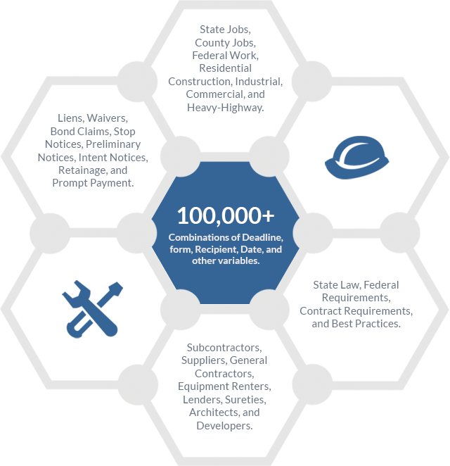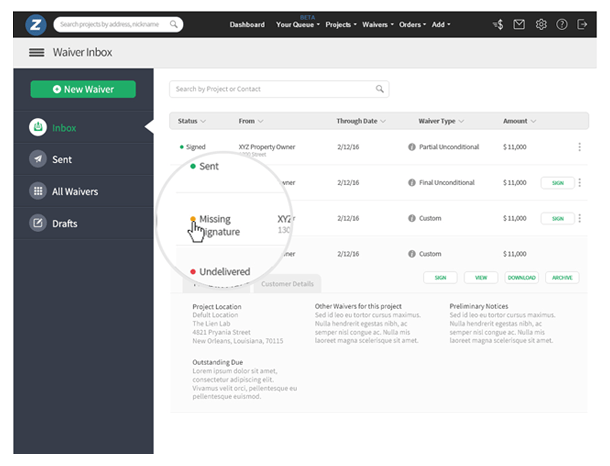 Save time and stop worrying about complex lien and bond requirements. Calculate your lien deadlines, requirements, and exposure with a single click. You'll never dig through piles of lien law resources again, because zlien makes it easy to always know where you stand.